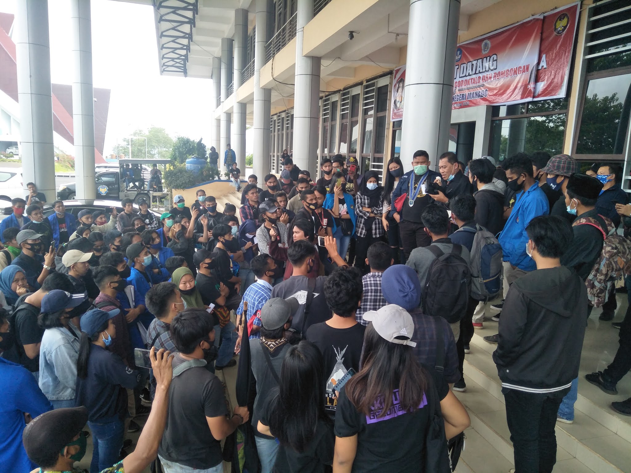 Pasalnya, aksi demo ratusan mahasiswa Unima ini, dihadang oleh aparat kepolisian di kampus Unima, Rabu (7/10).