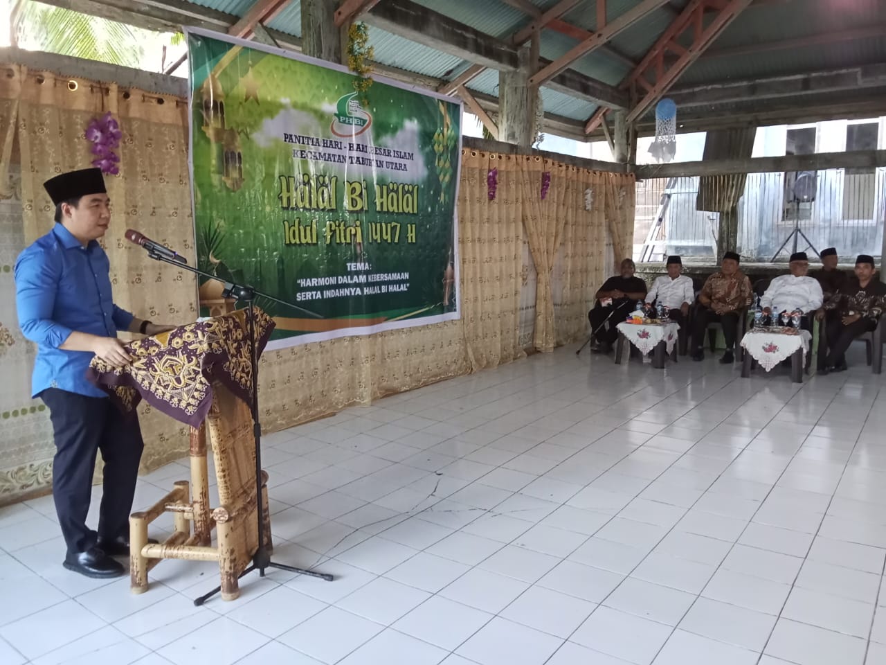 Sangihe (Gawai.co) – Suasana penuh kehangatan dan kebersamaan mewarnai kegiatan Halal Bihalal yang digelar Panitia Hari-hari Besar Islam (PHBI) Kecamatan Tabukan Utara, Sabtu (4/4/2026). Kegiatan tersebut berlangsung di Aula Masjid Khalid bin Walid Al Awal Moronge–Likuang dan dihadiri langsung oleh Bupati Kepulauan Sangihe, Michael Thungari.