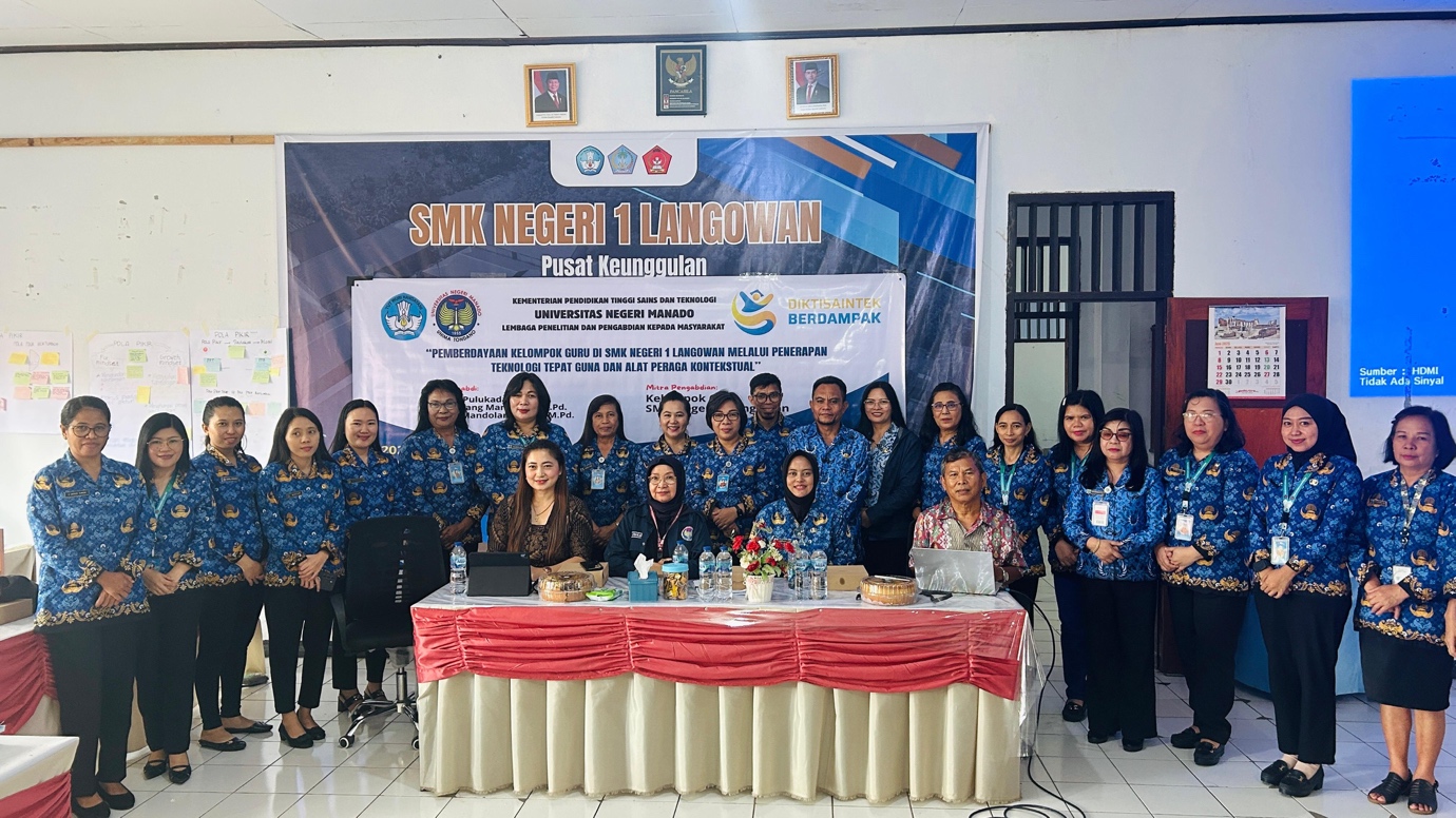 Kepala SMK Negeri 1 Langowan selaku ketua kelompok guru yang menjadi mitra, Hartini Ngadiorejo, S.Pd., M.Pd., dalam sambutannya menyampaikan apresiasi tinggi atas terselenggaranya kegiatan ini. Ia menegaskan bahwa pengembangan kapasitas guru merupakan investasi jangka panjang bagi sekolah.