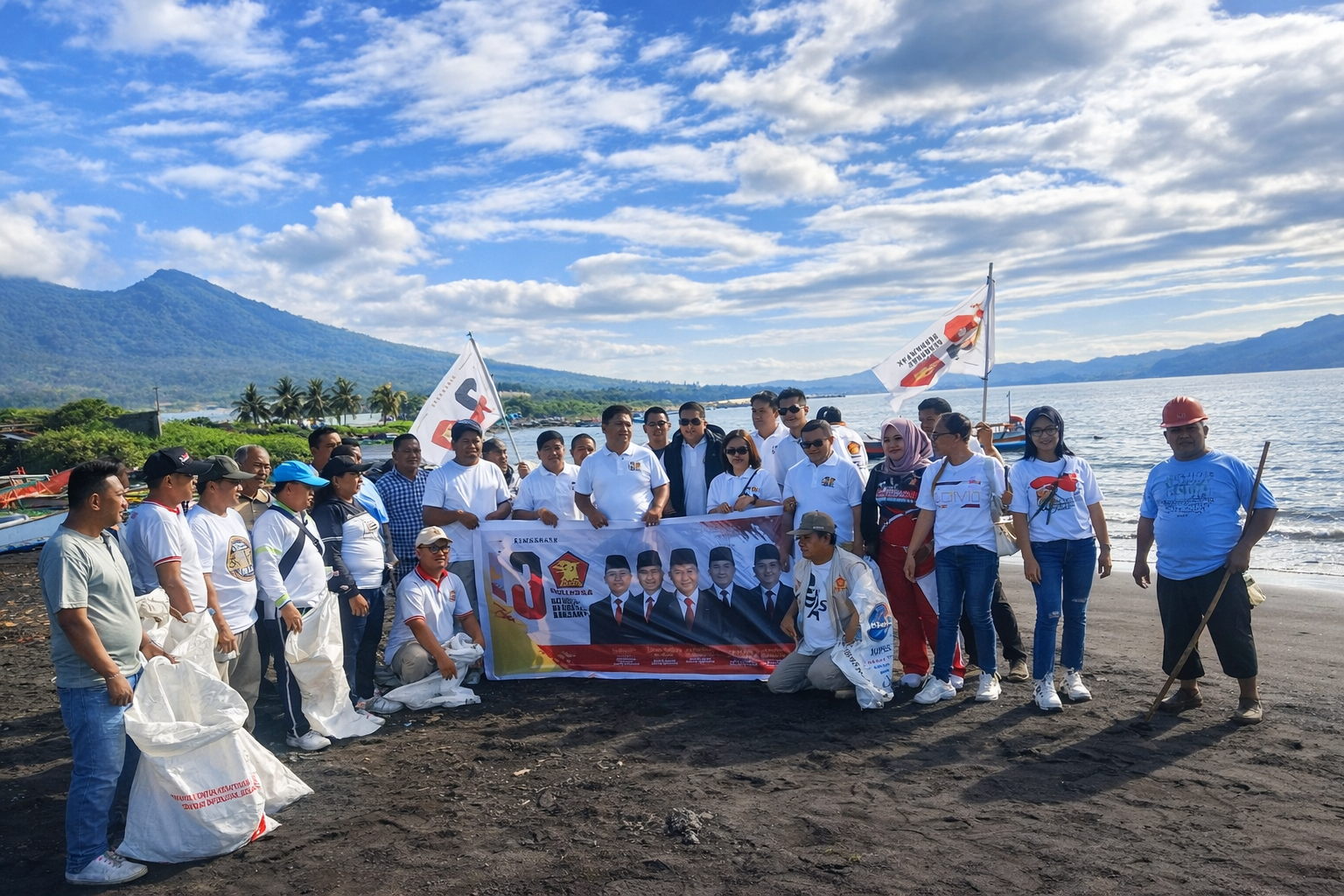 Jajaran DPC Partai Gerindra Kota Bitung bersama pengurus PAC, ranting, dan anak ranting menggelar aksi bersih-bersih pantai di kawasan Pantai Girian. Kegiatan tersebut menjadi simbol kepedulian kader terhadap lingkungan sekaligus memperkuat solidaritas internal partai.