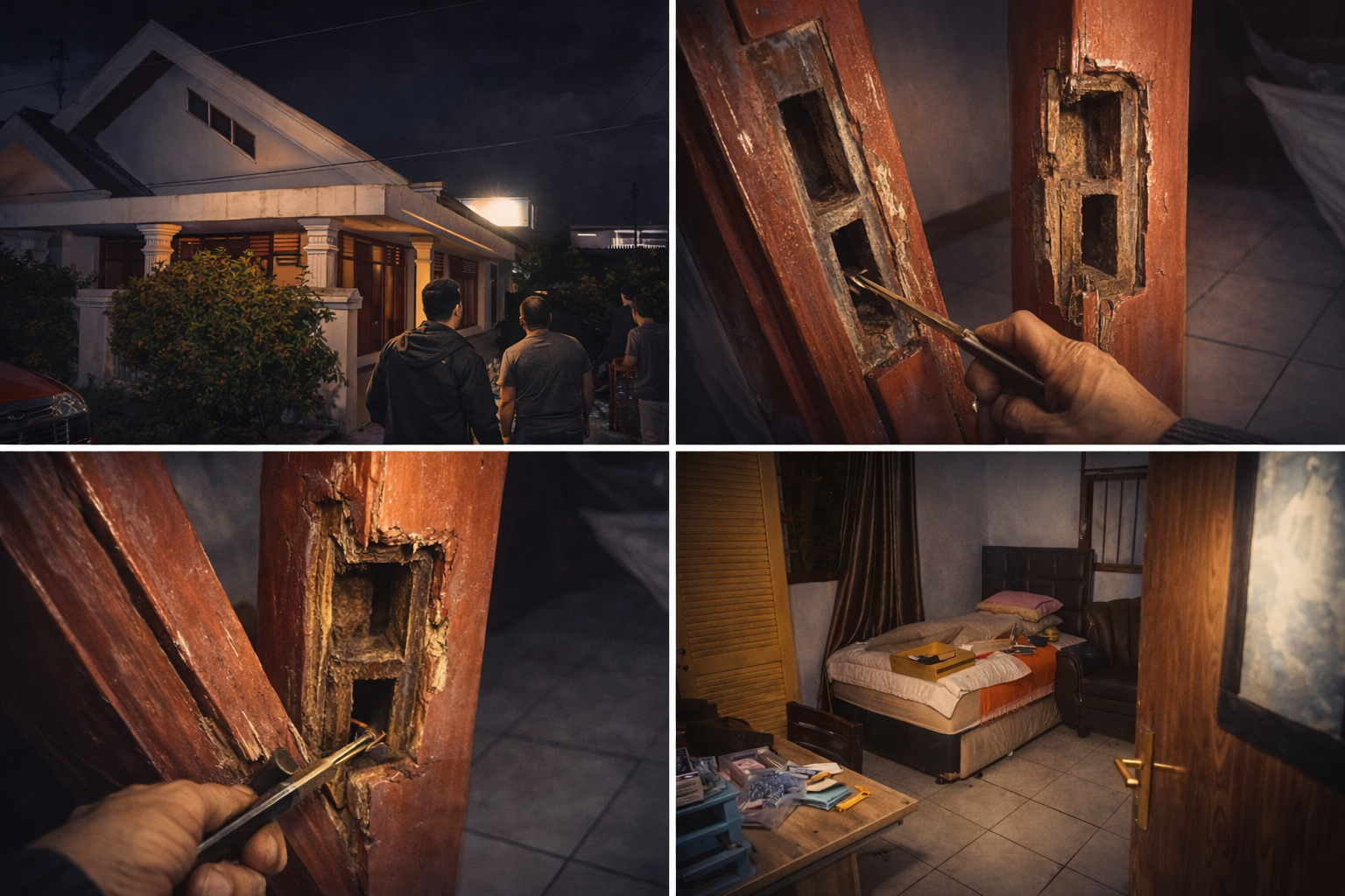 “Saudara saya memanjat pagar dan masuk ke dalam rumah. Saat diperiksa, pintu kamar pribadi saya sudah dalam keadaan rusak dan isi kamar terlihat acak-acakan seperti sengaja dibongkar,” jelasnya.