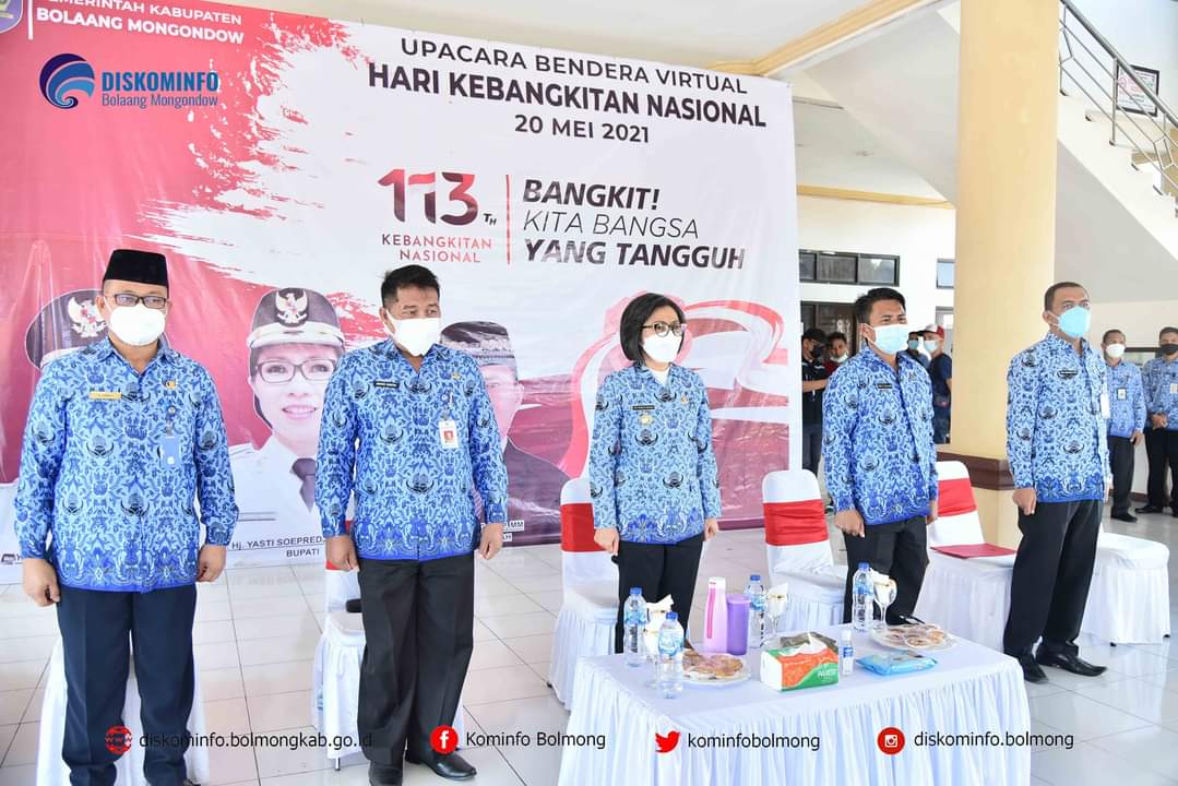 Hal itu berdasarkan penuturan Plt Kepala Diskominfo Bolmong Jenli Mongilong usai mengikuti upacara peringatan Hari Kebangkitan Nasional (Harkitnas) dan peluncuran Aplikasi Digital Nasional bersama Bupati Bolmong Yasti Soepredjo, Sekda Tahlis Gallang dan jajaran, Kamis, (20/05/2021) secara virtual yang dipimpin langsung oleh Presiden RI Joko Widodo (Jokowi).