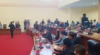Agenda yang juga dirangkaikan dengan paripurna pembicaraan tingkat 1 penyampaian atas rencana Perda inisiatif DPRD tentang pedoman pengelolaan barang milik daerah dan rencana Perda usulan eksekutif tentang pencegahan dan penanggulangan COVID-19 dan penyampaian hasil reses masa sidang I tahun 2021 itu, gagal disebabkan empat fraksi keluar dari sidang paripurna, Selasa (06/04/2021).