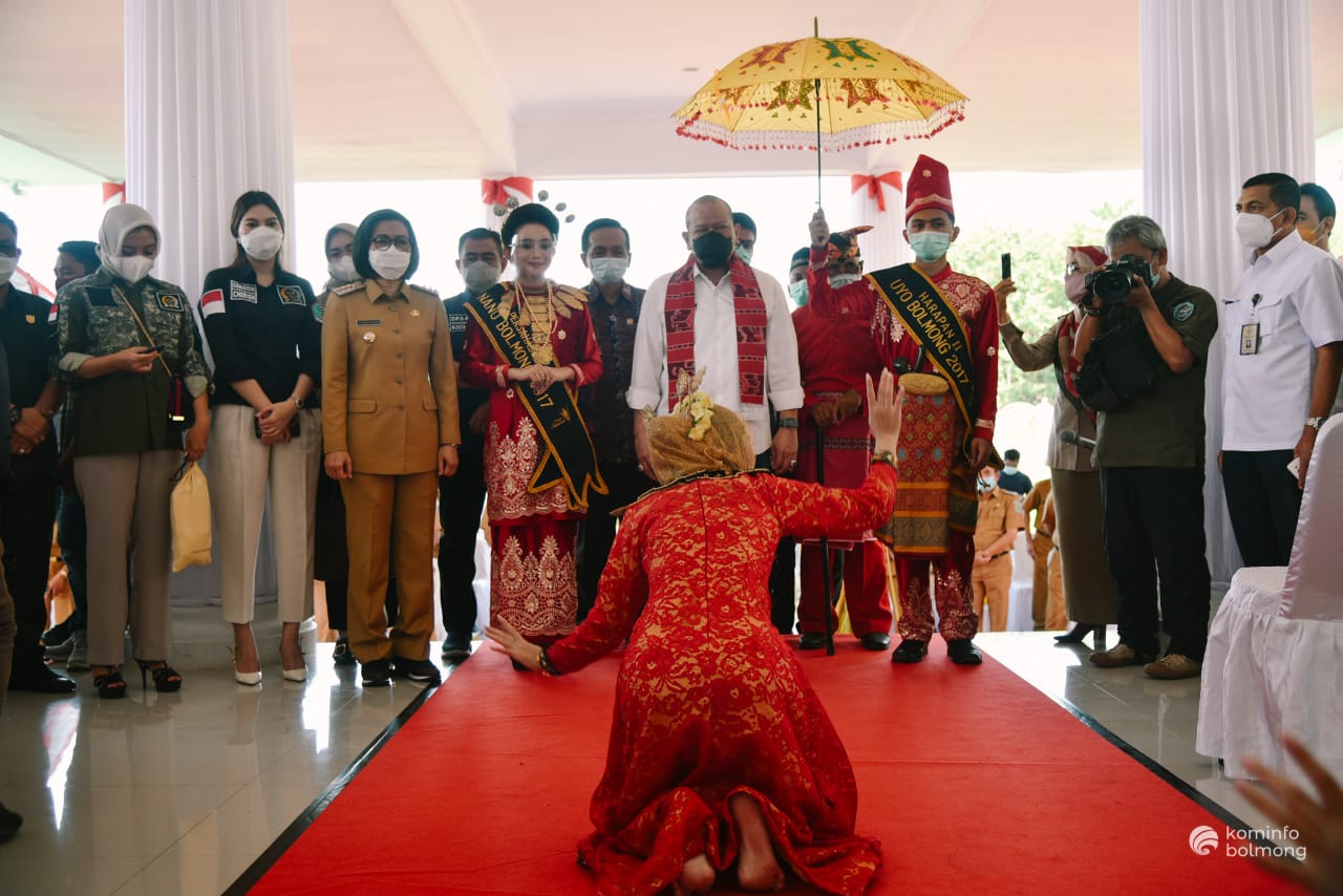 Dalam penyambutan rombongan, mereka disambut langsung adat itum-itum dan tarian kabela, turut dihadiri Forkopimda, Ketua DPRD Bolmong Welty Komaling, Camat, Sangadi, tokoh adat tokoh masyarakat serta dihadiri langsung Ketua Panitia Pemekaran Provinsi Bolaang Mongondow Raya (BMR) Abdulah Mokoginta.