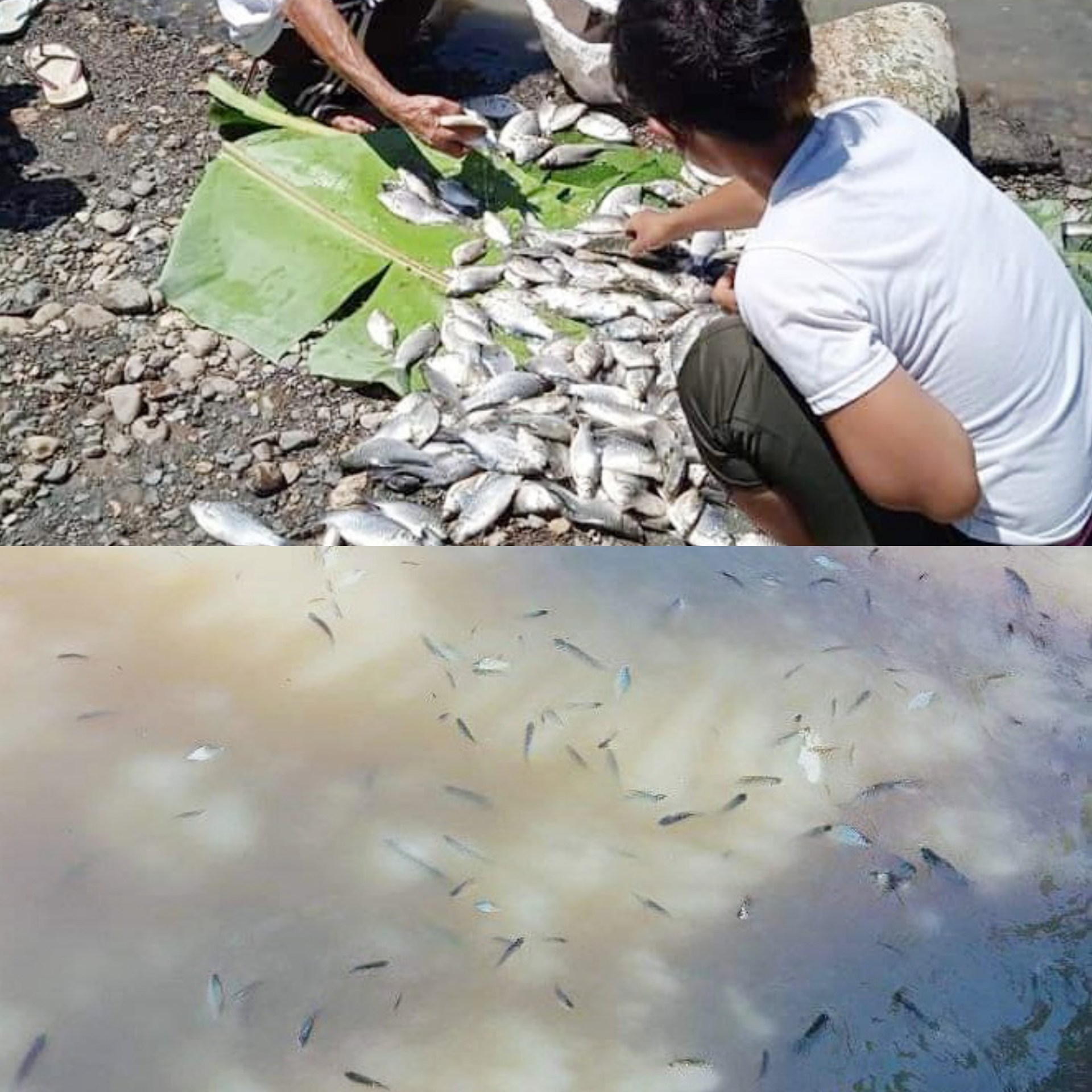 Ribuan Ikan di Sungai Ongkag Dumoga Mati, Tampak Warga Sedang Mengambil Ikan. (Foto: Ist)