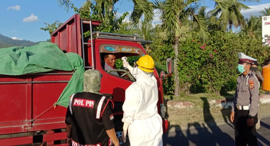 | Pemeriksaan Kesehatan Pelintas di Perbatasan Bolmong dan Minsel. (Foto: Istimewa) |