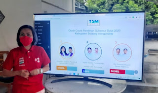 Sebelumnya dari hasil hitung cepat yang dilakukan, pasangan SSM-OPP unggul dengan perolehan suara 40.02% atau meraih 14.891 suara. Sedangkan pasangan Amalia Ramadhan S Landjar –Uyun Kunaefi Pangalima memperoleh 10.564 atau 28,39%. Sedangkan pasangana Suhendro Boroma-Rusdi Gumalangit memperoleh 11.751 atau 31.58%. (Tim Gawai)