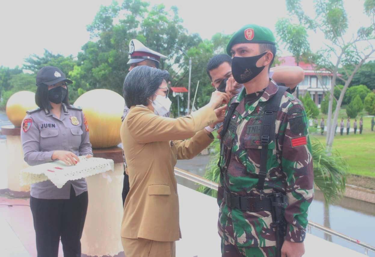 BOLMONG (Gawai.co) – Bupati Kabupaten Bolaang Mongondow (Bolmong), Yasti Soepredjo Mokoagow, memimpin apel gelar pasukan Operasi Lilin samrat 2020, di halaman kantor bupati Bolmong, Senin, (21/12).