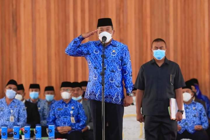 BOLMUT (Gawai.co) – Bupati Bolmut Depri Pontoh memimpin apel korpri di lingkungan pemerintah daerah Kabupaten Bolaang Mongondow Utara yang bertempat di auditorium Pohohimbunga kantor Bupati Bolmut, pada Rabu (17/2).