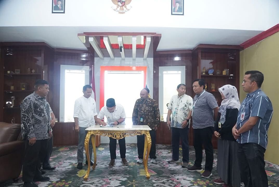 Boltara – Bupati Bolaang Mongondow Utara (Boltara), Dr. Sirajudin Lasena, secara resmi melakukan penandatanganan hasil survei awal lokasi kegiatan pembangunan peningkatan Rumah Sakit Umum Daerah (RSUD) Kabupaten Boltara. Penandatanganan berlangsung di ruang rapat Bupati Boltara, Jumat /3/10/25), bersama tim Kementerian Kesehatan RI.