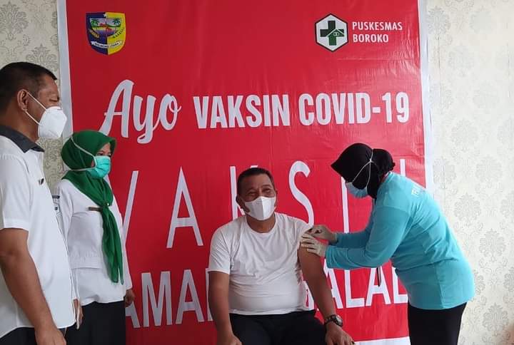 BOLMUT (Gawai.co) – Bupati Bolaang Mongondow Utara Depri Pontoh dan Sekretaris Daerah Asripan Nani, bersama staf Ahli Bupati serta sejumalah SKPD menerima vaksin suntikan ke dua. Vaksinasi Covid-19 dosis kedua ini dilaksanakan di Puskesmas Boroko, Rabu (24/3).