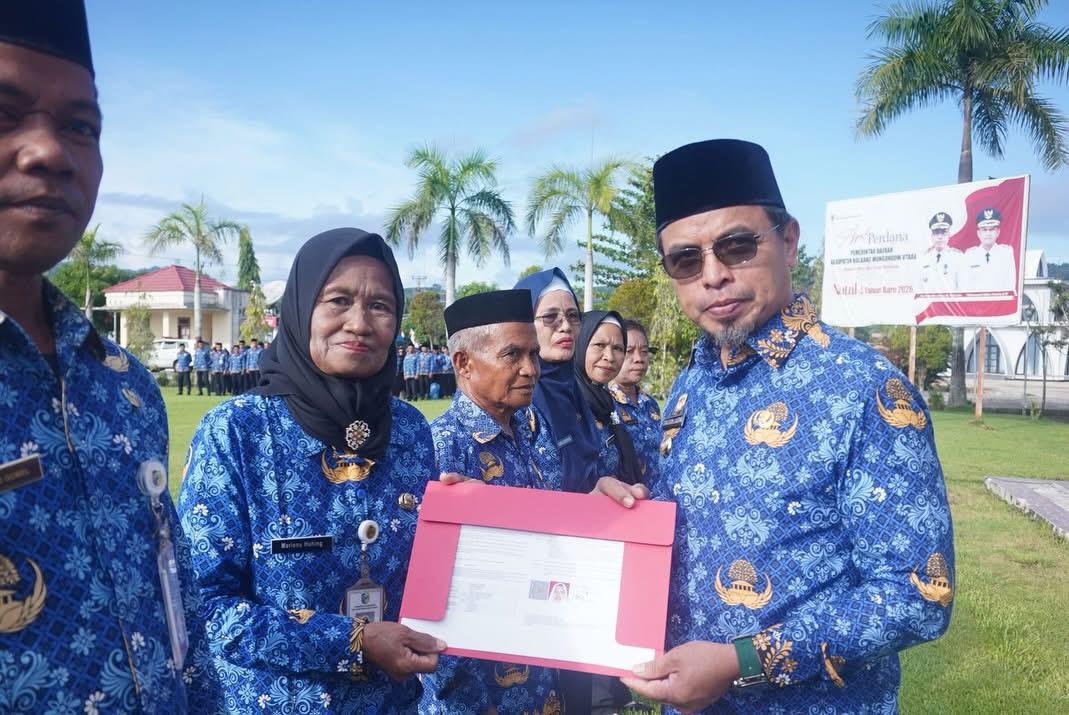 Pada kesempatan tersebut, Bupati Boltara didampingi Wakil Bupati Moh. Aditya Pontoh secara simbolis menyerahkan Surat Keputusan (SK) Pensiun kepada sejumlah Aparatur Sipil Negara (ASN) yang telah memasuki masa purna tugas.