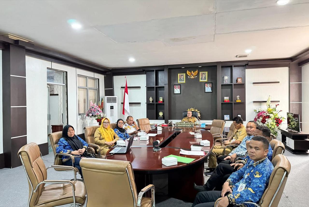 Boltara — Pemerintah Kabupaten Bolaang Mongondow Utara (Boltara) mengikuti Rapat Koordinasi (Rakor) Pengendalian Inflasi Daerah yang digelar secara virtual oleh Kementerian Dalam Negeri (Kemendagri), Selasa (23/9/25). Bupati Boltara, Dr. Sirajudin Lasena, diwakili Asisten Bidang Perekonomian dan Pembangunan, Abdul Mutoh Daeng Mulisa, memimpin jajaran Pemkab dari ruang rapat Sekretaris Daerah.