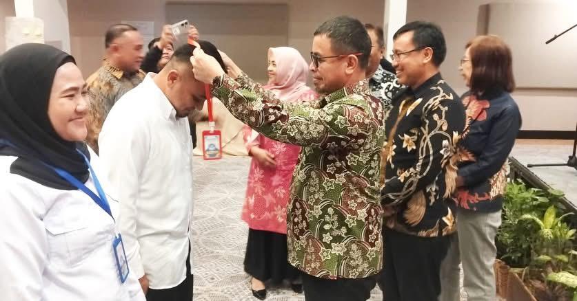 Prosesi penutupan ditandai dengan penanggalan kartu peserta oleh Bupati Boltara, sebagai simbol berakhirnya rangkaian pelatihan sekaligus awal pengabdian baru para calon pemimpin pendidikan di daerah.
