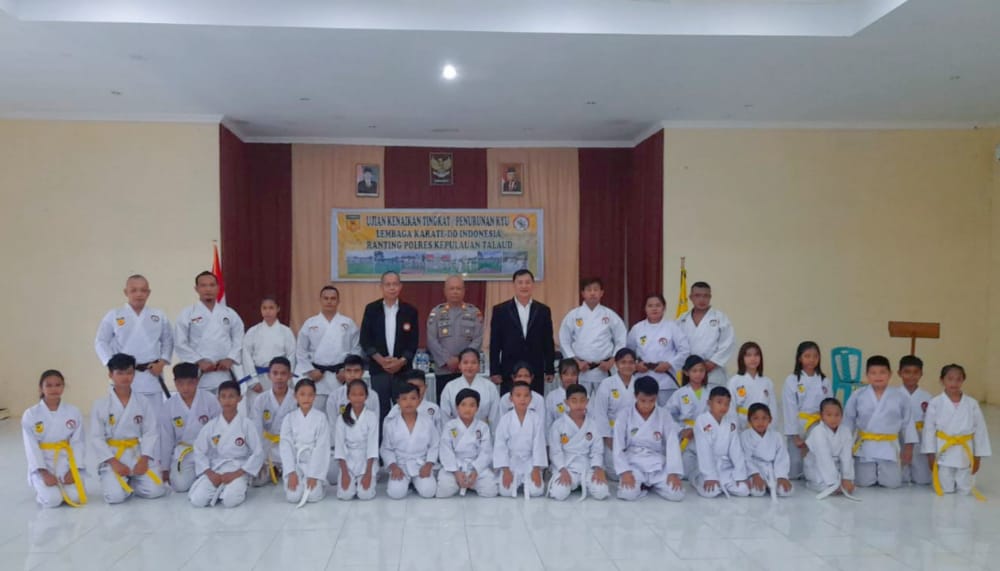 MELONGUANE (Gawai.co)- Sebanyak 30 Karateka Dojo Lemkari Polres Kepulauan Talaud laksanakan ujian kenaikan tingkat dan penurunan Kyu di Aula dan Halaman Mapolres Kepulauan Talaud, belum lama ini.