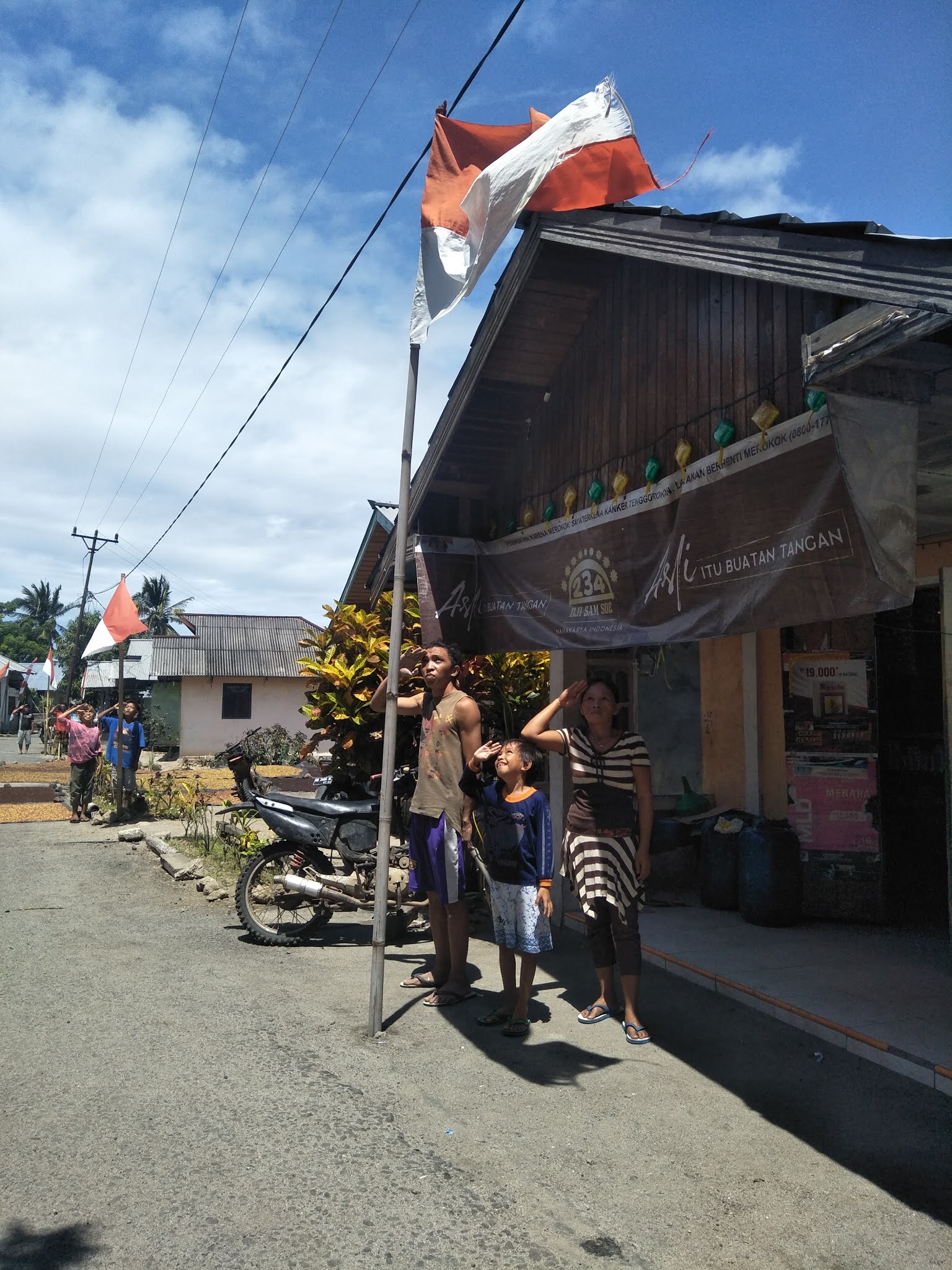Masyarakat dengan populasi jumlah jiwa 779 dan 220 Kepala Keluarga yang notabene keseharian bekerja sebagai nelayan maupun petani ini memiliki rasa bangga ketika masih diizinkan yang Maha Kuasa untuk menghormati Sang Saka Merah Putih.