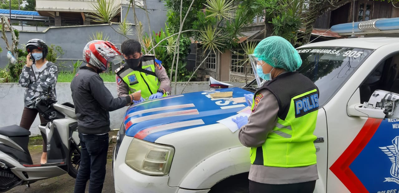 TONDANO (Gawai.co) – Polres Minahasa berhasil menjaring 248 perkara dalam Operasi (Ops) Patuh Samrat 2020 periode minggu I, dimana pengendara yang melanggar lalulintas (lalin) didominasi oleh pelaku dengan usia 26-50 tahun, rincian untuk tilang sebanyak 72 perkara, kemudian teguran 176 perkara. Hal itu disampaikan Kasatlantas Polres Minahasa AKP Yulfa Irawati melalui Kanit Laka Ipda Afdal Buana kepada Koran Sindo, Selasa (4/8).