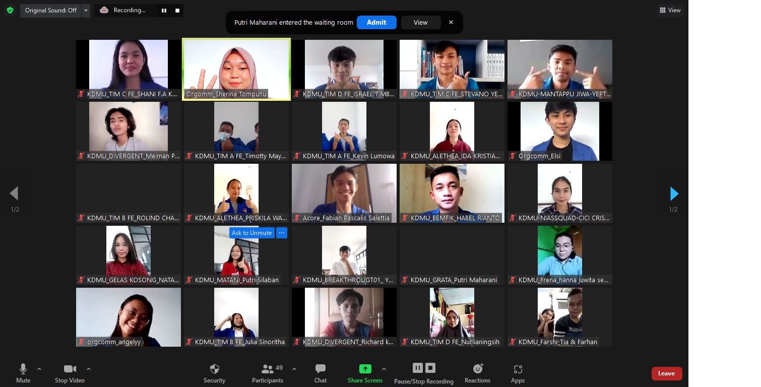 Kegiatan ini dilaksanakan sesuai dengan jadwal yang ditetapkan oleh panitia, yaitu ronde pertama dan kedua untuk debat bahasa Indonesia atau KDMU (Kompetisi Debat Mahasiswa Unima) melalui dalam Zoom dan terbagi dalam 5 breakout room KDMU.
