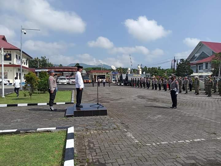 TONDANO (Gawai.co) – Sekretaris Daerah Kabupaten Minahasa Frits Muntu SSos memimpin apel mewakili bupati dalam rangka Gelar Pasukan Operasi (Ops) Ketupat Samrat Tahun 2021 jelang perayaan Idul Fitri 1442 Hijriah, di halaman Polres Minahasa, Rabu (5/5).