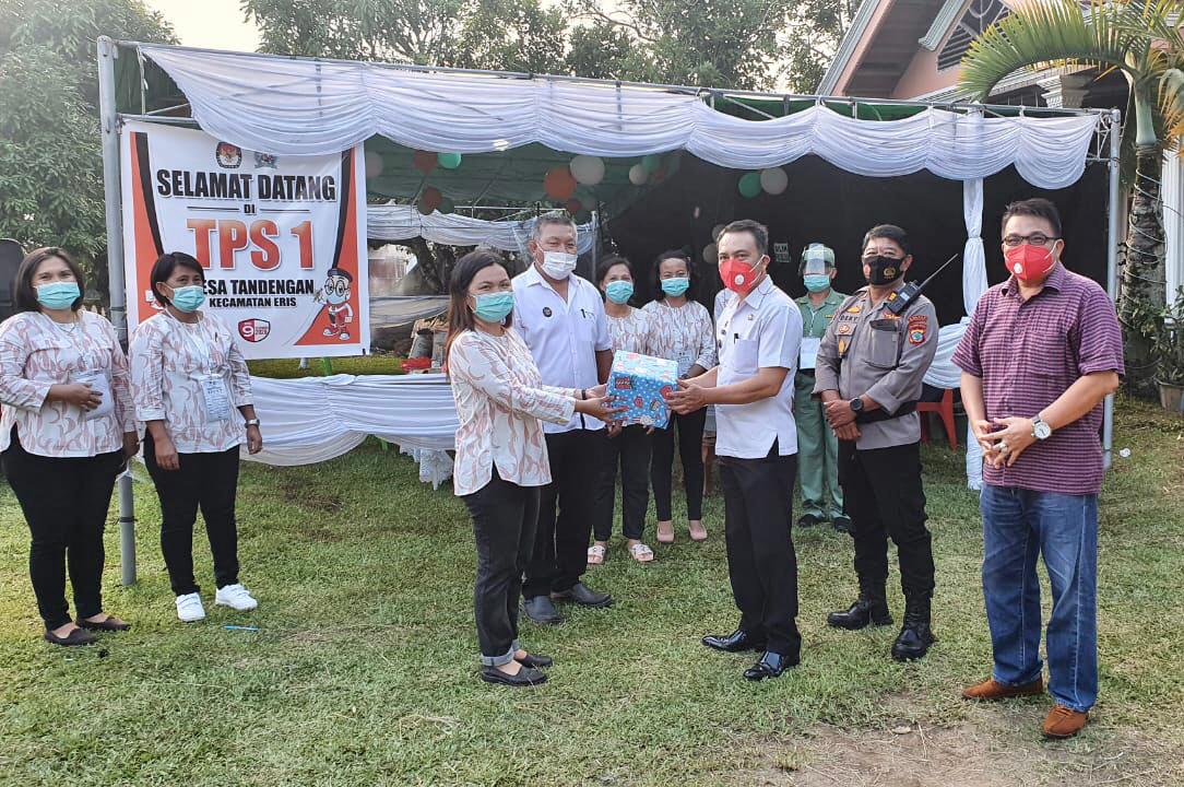 Atas hasil tersebut, Camat Eris Hendrik Lombogia menyerahkan langsung hadiah kepada Ketua KPPS TPS 1 Silvya Tampi-Artha sebagai Juara Lomba Kerapihan Keserasian TPS, yang turut disaksikan oleh Kepala Dinas Komunikasi dan Informatika Kabupaten Minahasa Agustivo Tumundo, Kapolsek Eris AKP Deky Demus, Wakapolsek Eris IPTU Djoy Reppie, Hukum Tua Tandengan Frangky Solang, Panwas TPS Tandengan Yessy Mewoh dan perangkat Desa lainnya.