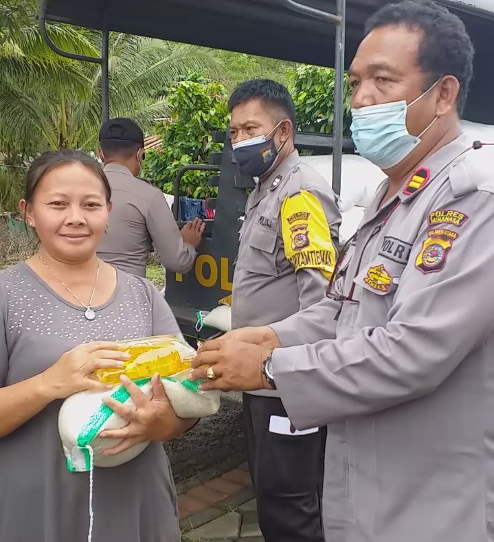 Penyerahan bantuan dari Kapolres ini diserahkan oleh Kapolsek Toulimambot Iptu J.R Sinaga kepada masyarakat Sabtu (26/12).