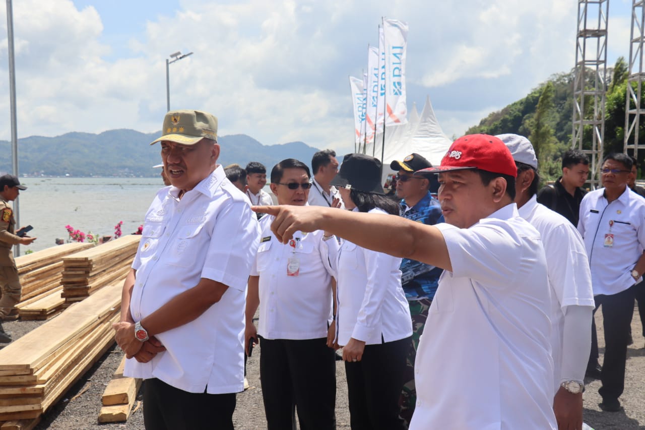 TONDANO (Gawai.co) – Gubernur Sulawesi Utara, Olly Dondokambey didampingi sejumlah pejabat terkait beserta Penjabat Bupati Minahasa, Jemmy Kumendong dan Sekda Minahasa, Lynda Watania, memantau langsung kesiapan lokasi kegiatan yang dipusatkan di Tonsaru, Danau Tondano.
