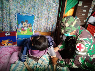 Jekli Kiling yang merupakan anak bungsu dari Herce Pai (72) di Jaga-III Desa Tempang Tiga tersebut, sudah tiga tahun tidak bisa terbangun dari tempat tidur akibat penyakit yang dideritanya, Serma Munir saat melakukan pemeriksaan, kepada Awak Media Center Kodim mengatakan, tensi dan denyut nadi Saudara Jekli masih normal saat diperiksa, hanya terdapat benjolan pada tiap persendian baik ditangan maupun di kaki.