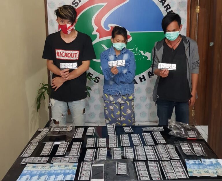 TONDANO (Gawai.co) – Polres Minahasa kembali meringkus tiga orang pelaku pengedar obat keras jenis Trihexyphenidyl, pelaku yang diringkus adalah perempuan berinisial AFS alias Amel (26) Warga Wewelen Kecamatan Tondano Barat, Bersama kedua rekannya, lelaki FP alias Nando (32), Warga Tondano, dan lelaki RPH alias Icat (25) Warga Wawalintoan Kecamatan Tondano Barat.