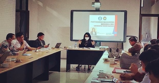 TONDANO (Gawai.co) – Rektor Universitas Negeri Manado (Unima) di Tondano Prof. Dr. Deitje Adolfien Katuuk MPd memimpin rapat persiapan pertukaran mahasiswa merdeka Unima tahun 2021, bertempat di ruang rapat lantai II kantor pusat, Senin (19/4).
