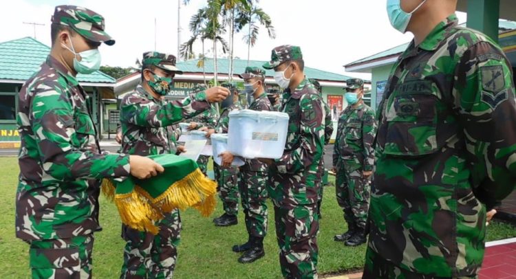 TONDANO (Gawai.co)– Dalam menyambut hari raya Idul Fitri 1441 Hijriah Satuan Komando Distrik Militer (Kodim) 1302 Minahasa menggelar penyerahan bingkisan dan tunjangan hari raya (THR) bagi para anggota Kodim di lapangan upacara Makodim Minahasa, Rabu (20/5).