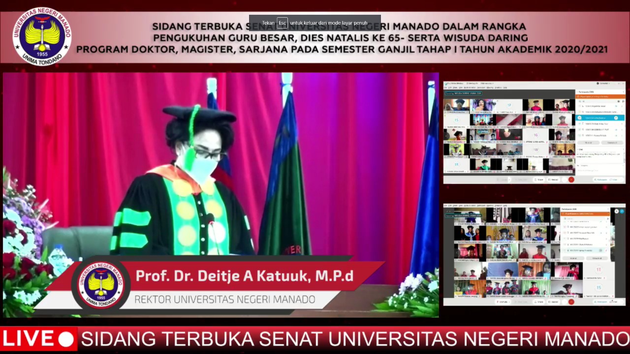 Suasana wisuda daring Unima sekaligus perayaan HUT ke-65 yang dipimpin langsung rektor. (ist)