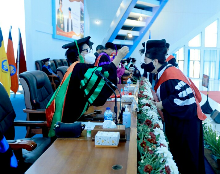 “Kami ucapkan pula banyak selamat kepada wisudawan yang telah resmi menyandang gelar sarjana baik yang mengikuti langsung di Auditorium maupun di rumah masing-masing. Sukses selalu,” tandasnya. (Mart Rasuh/Tim Gawai)