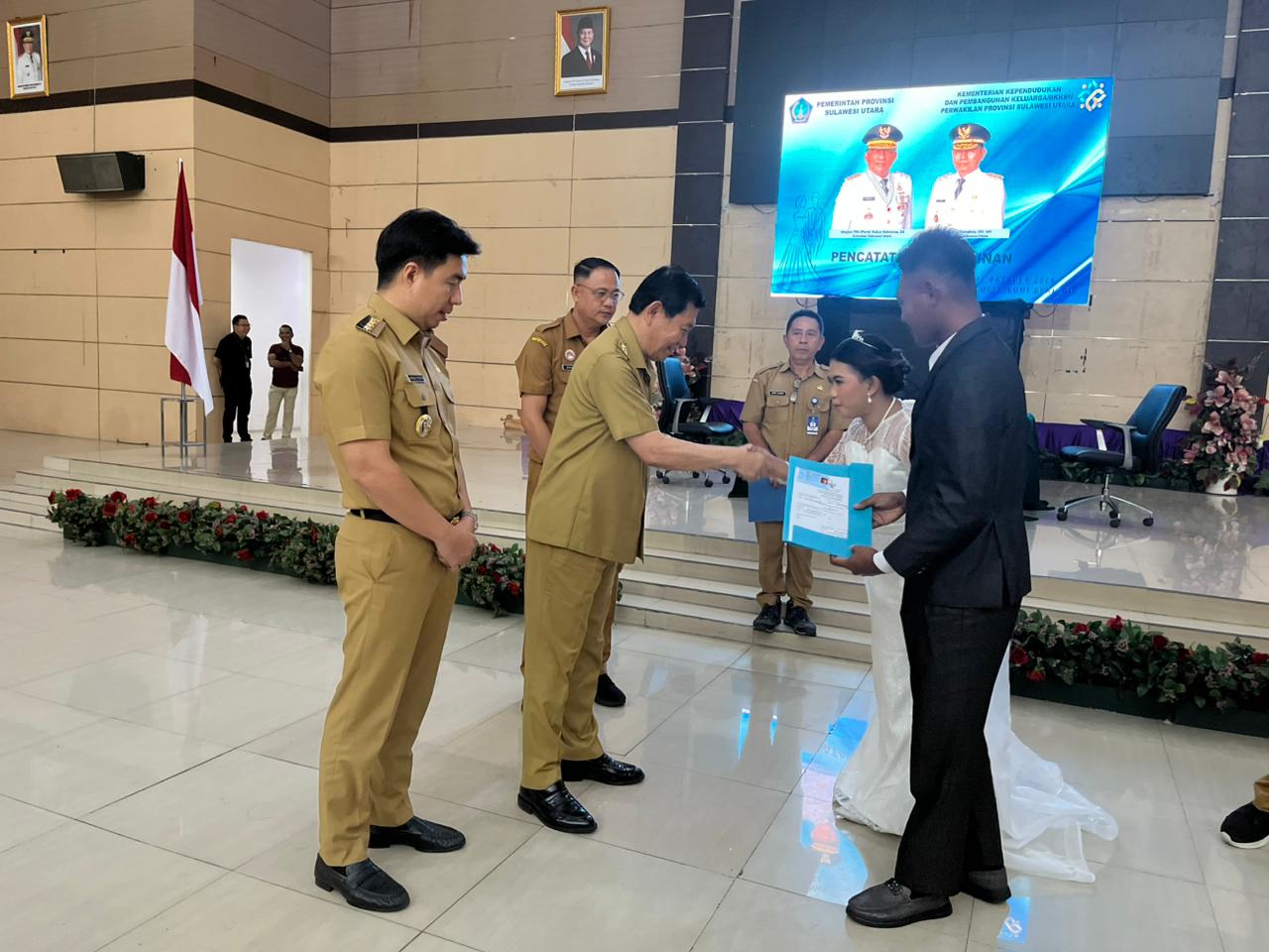 Acara diawali dengan ibadah pemberkatan nikah, dilanjutkan dengan prosesi pencatatan sipil yang disaksikan langsung oleh Wakil Gubernur Sulawesi Utara bersama para bupati dan wali kota se-Sulut.
