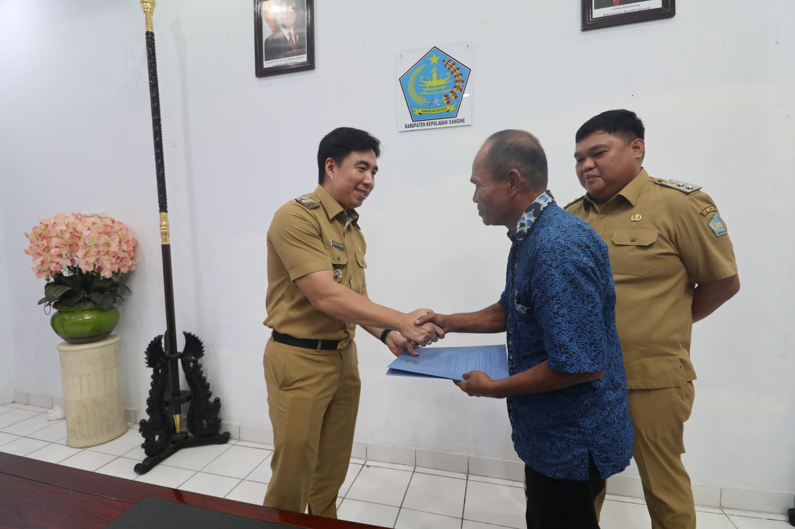 Sangihe, Gawai.co — Pemerintah Kabupaten Kepulauan Sangihe resmi menambah tenaga pendukung strategis di lingkar kerja Bupati, Selasa (6/1/2026). Bupati Michael Thungari bersama Wakil Bupati Tendris Bulahari menyerahkan Surat Keputusan (SK) kepada tujuh Staf Khusus Bupati dalam sebuah pertemuan di Ruang Rapat Bupati.