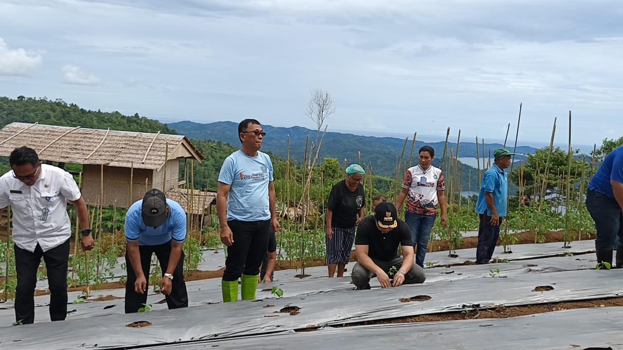 Bupati Sangihe Michael Thungari Menanam Bibit cabai Dan Menyerahkan Bantuan Padi Bagi Kelompok Tani Di Kampung Kalinda