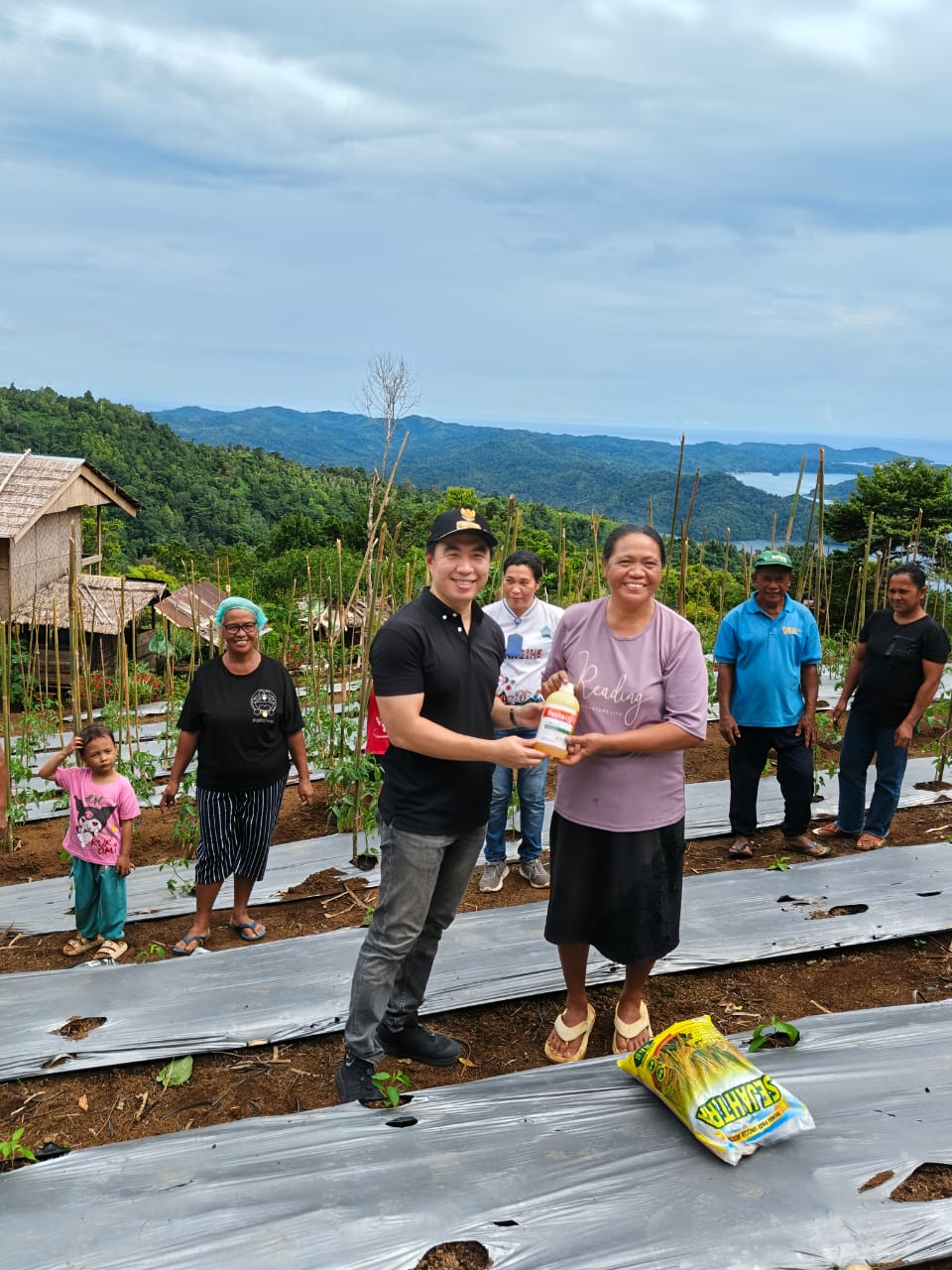 Bupati Sangihe Michael Thungari Menanam Bibit cabai Dan Menyerahkan Bantuan Padi Bagi Kelompok Tani Di Kampung Kalinda