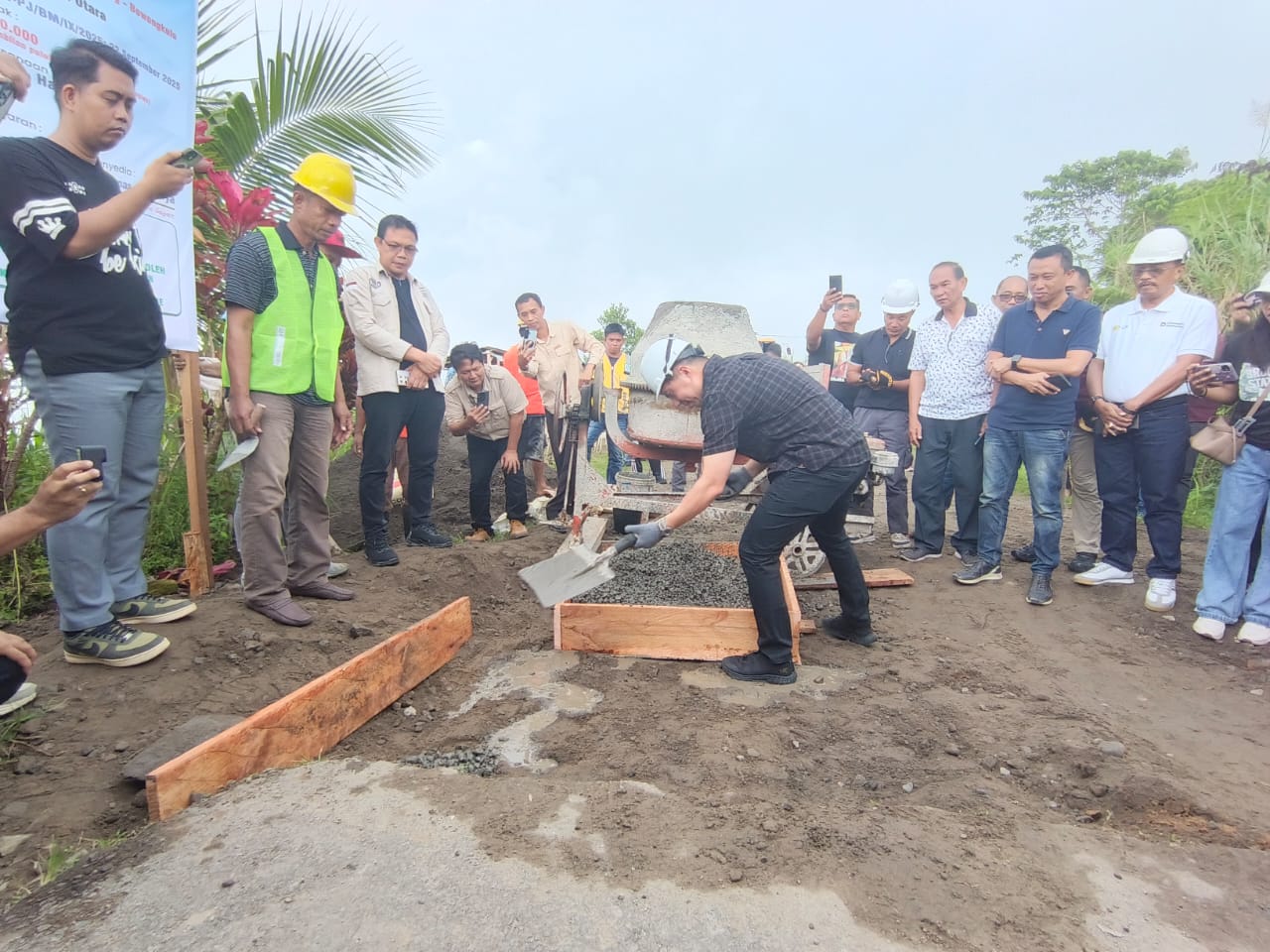 Sangihe, Gawai.co — Pembangunan jalan puncak Lose Kecamatan Tabukan Tengah mulai dikerjakan, ditandai dengan pengecoran awal oleh Bupati Kepulauan Sangihe, Michael Thungari (MT), Jumat (03/10/2025)