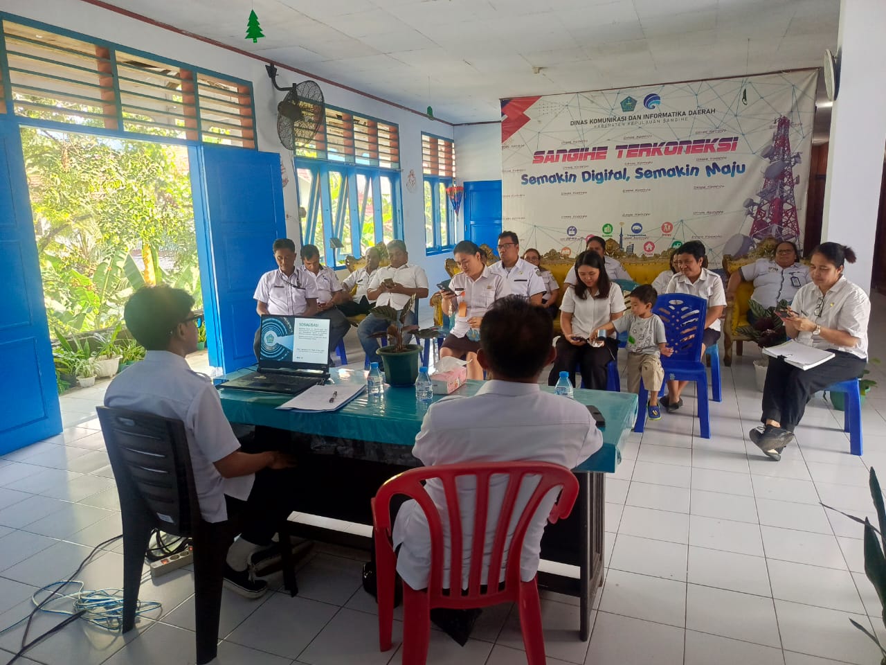 Kegiatan sosialisasi tersebut diawali di lingkungan Dinas Kominfo Sangihe dan dihadiri oleh seluruh Aparatur Sipil Negara (ASN) di lingkup instansi tersebut.
