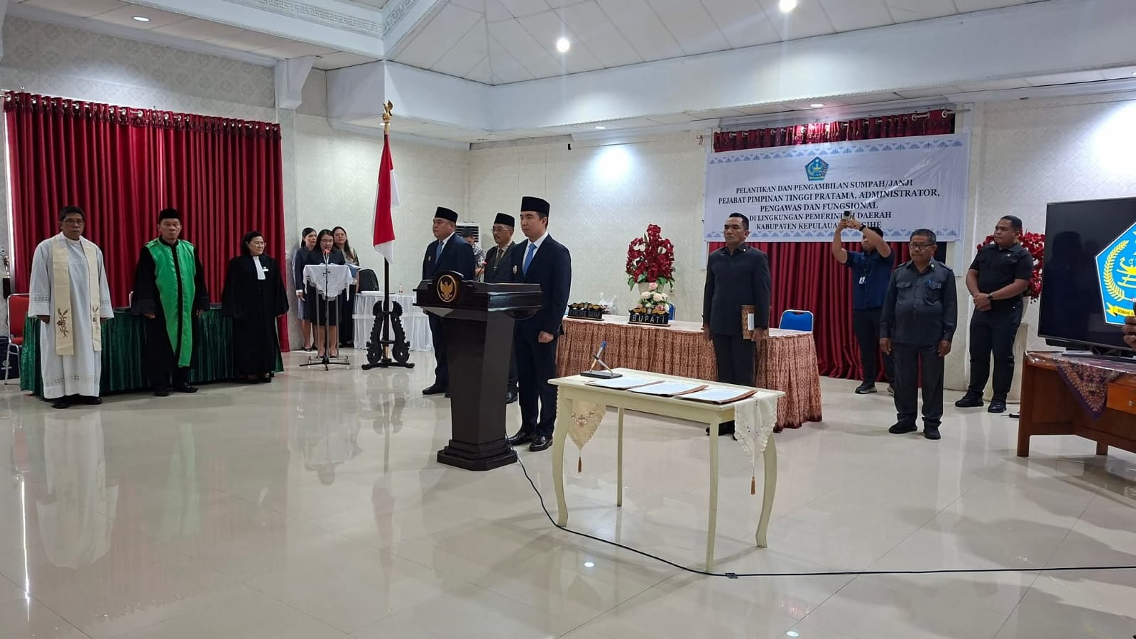 Sebanyak 68 pejabat yang dilantik terdiri dari pimpinan perangkat daerah, pejabat administrator dan pengawas, kepala sekolah, hingga tenaga fungsional. Pelantikan ini diharapkan memperkuat kinerja birokrasi serta meningkatkan kualitas pelayanan publik di Kabupaten Kepulauan Sangihe. (nal)