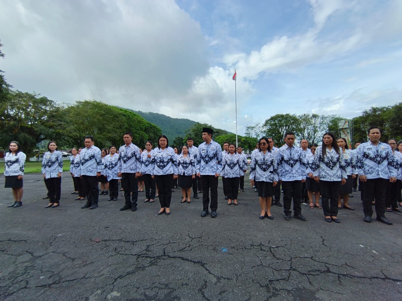 Sangihe, Gawai.co — Pemerintah Kabupaten Kepulauan Sangihe melaksanakan Upacara Bendera dalam rangka memperingati Hari Guru Nasional Tahun 2025 yang berlangsung di Lapangan Santiago, Tahuna. Upacara dipimpin oleh Bupati Kepulauan Sangihe, Bapak Michael Thungari, S.E., M.M., dan dihadiri oleh jajaran pemerintah daerah, tenaga kependidikan, serta para guru dari berbagai sekolah.selasa(25/11/2025).