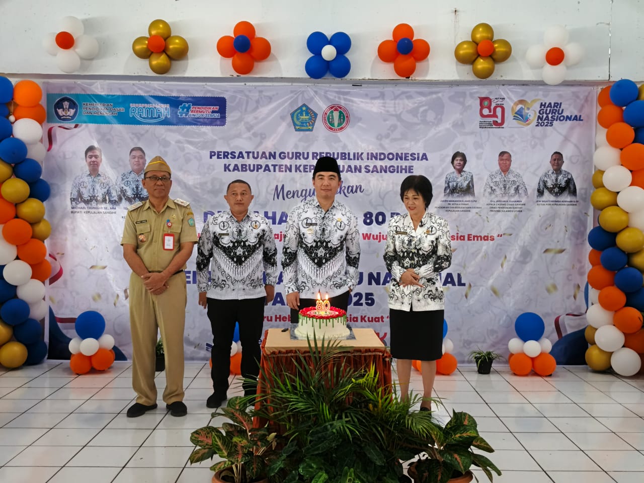 Melalui momentum Hari Guru Nasional, pemerintah daerah menyampaikan penghargaan setinggi-tingginya kepada seluruh guru, kepala sekolah, dan tenaga kependidikan atas dedikasi, pengabdian, serta kontribusinya dalam meningkatkan mutu pendidikan di Kabupaten Kepulauan Sangihe.