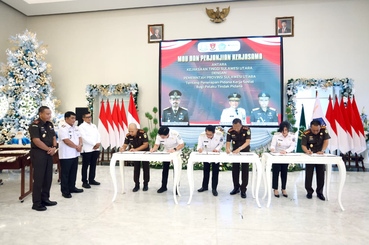 Sangihe, Gawai .co — Rabu 10 Desember Bupati Kepulauan Sangihe Bapak Michael Thungari, SE, MM bersama para bupati/wali kota se-Provinsi Sulawesi Utara menandatangani Nota Kesepahaman dan Perjanjian Kerja Sama dengan Kejaksaan Tinggi (Kejati) Sulawesi Utara,rabu(10/12/2025).