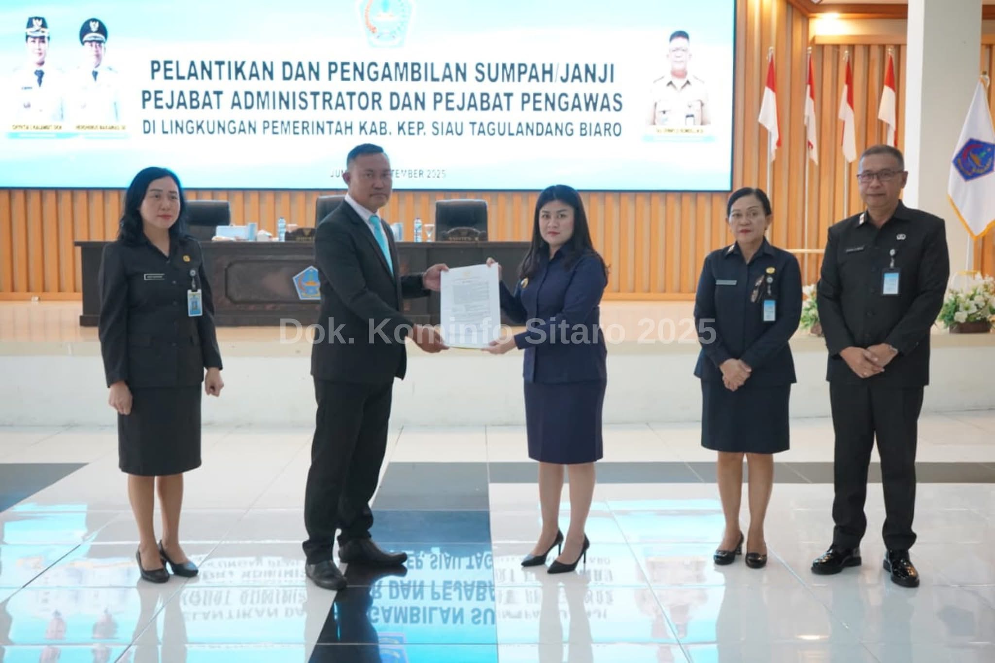 SITARO (Gawai.co) – Bupati Kepulauan Sitaro, Chyntia Ingrid Kalangit, menegaskan pentingnya integritas, loyalitas, dan keteladanan dalam kepemimpinan aparatur sipil negara (ASN), saat memimpin langsung pelantikan dan pengambilan sumpah/janji Pejabat Struktural di lingkungan Pemerintah Kabupaten Kepulauan Sitaro.