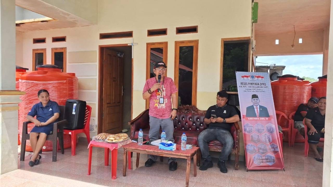 SITARO, Gawai.co — Ketua DPRD Kabupaten Kepulauan Siau Tagulandang Biaro (Sitaro), Djon Ponto Janis, SH, melaksanakan agenda reses masa sidang ke tiga di Kampung Apelawo, Kecamatan Siau Timur, Rabu (7/8/2025). Dalam kegiatan itu, warga menyampaikan sejumlah persoalan yang menjadi prioritas di wilayah mereka.