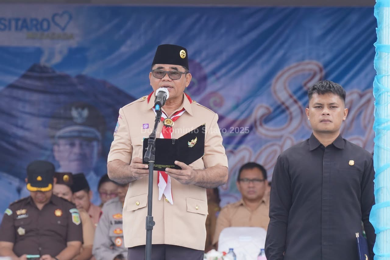 Seruan tersebut disampaikannya saat bertindak sebagai Inspektur Upacara pada peringatan Hari Pramuka ke-64, yang berlangsung di halaman Kantor Bupati Sitaro, Kamis (14/8/2025).