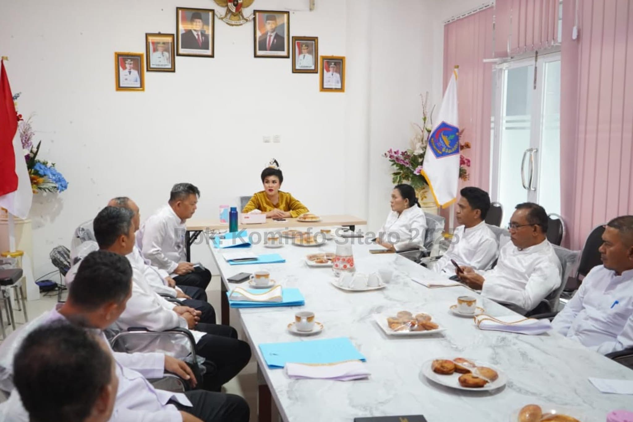 Bupati Sitaro, Chyntia Ingrid Kalangit pimpin langsung rapat percepatan DSP untuk korban erupsi Gunung Ruang. (Foto: Kominfo Sitaro)