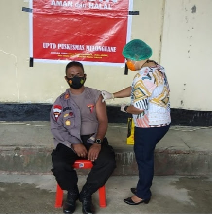 TALAUD (Gawai.co) – Satuan Brigade Mobil (Brimob) Kompi 4 Batalyon A Pelopor Talaud terima vaksin Covid 19 tahap pertama di markas Brimob Kompi 4 Batalyon A Pelopor, Kamis (18/3).