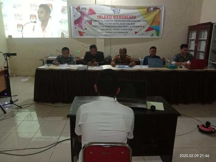 MELONGUANE (Gawai.co) – Komisi Pemilihan Umum (KPU) Kepulauan Talaud hingga hari keempar menjalani tes wawancara bagi calon anggota Panitia Pemilihan Kecamatan (PPK) di Kantor KPU, Senin (10/2).
