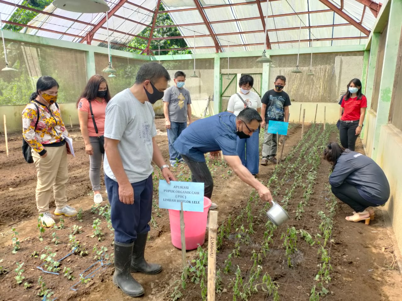 “Dimana wadah bioflok ini membuang limbah kolam kurang lebih 100 liter per hari. Limbah ini kemudian di tampung pada bak pembuangan dan dimanfaatkan sebagai Pupuk Organik Cair (POC) untuk tanaman hortikultura dan hasilnya sangat baik. Dimana, meski tanpa penambahan pupuk anorganik, terbukti pemanfaatan limbah ini mampu menghasilkan produk sayur organik. Tetapi untuk jenis florikultura belum pernah di coba. Nah, kali ini bersama Distakan Kota Tomohon akan coba di aplikasikan pada tanaman Krisan,” tukasnya.