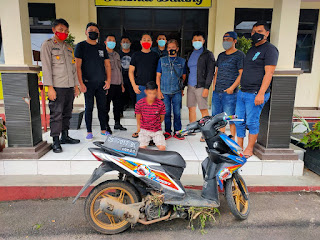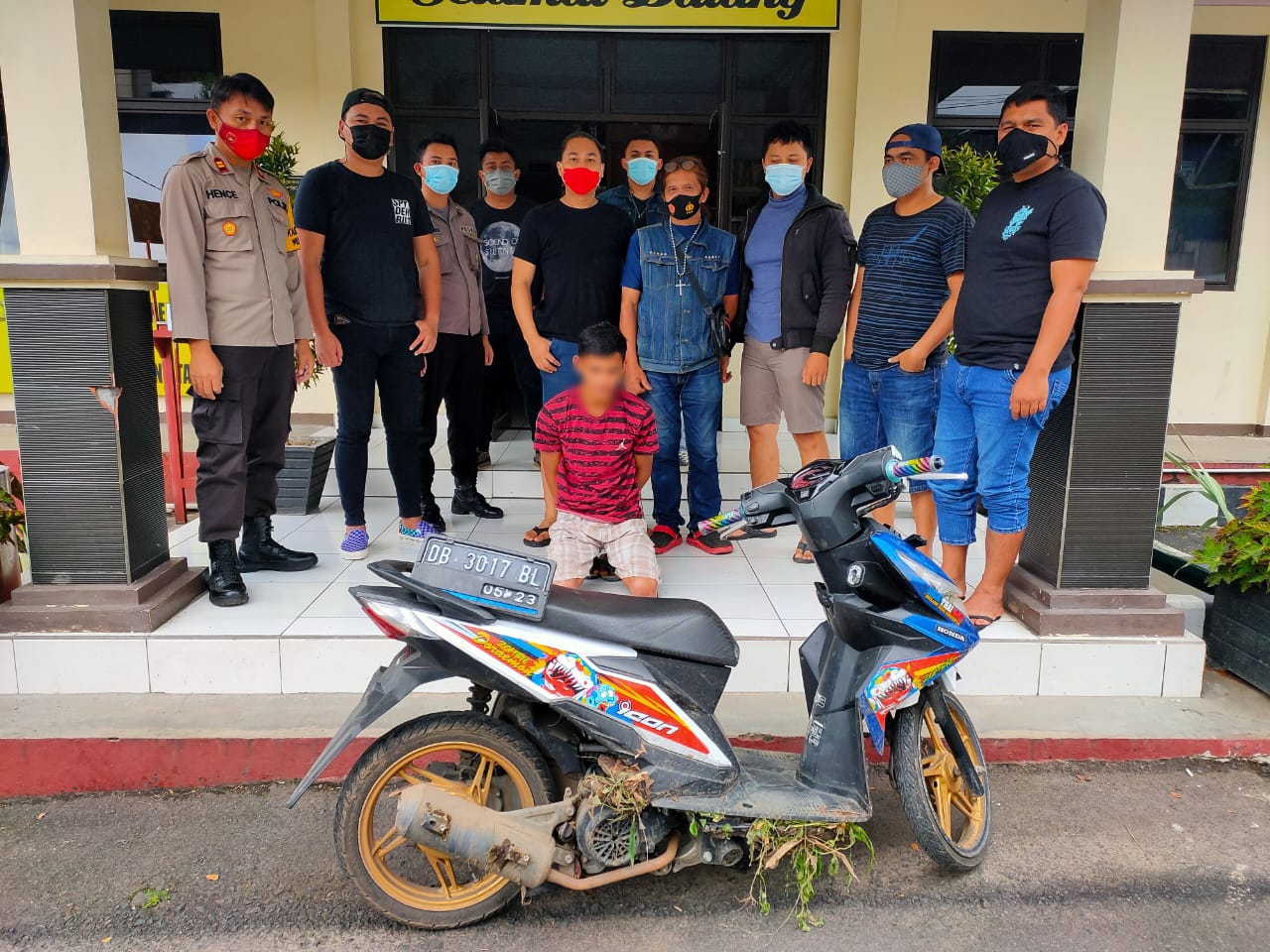 Pelaku saat diamankan bersama barang bukti berupa satu unit sepeda motor. (ist)
